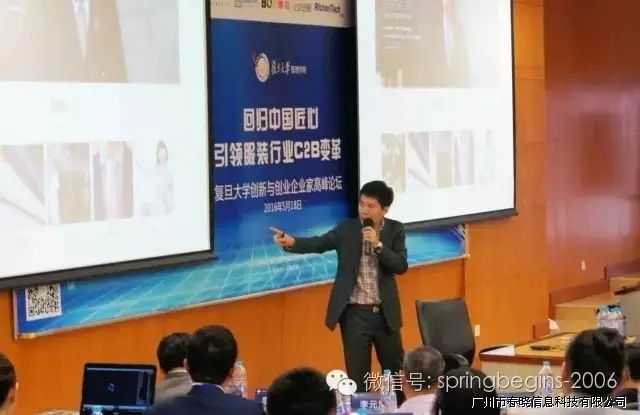 5月18日下午13:00,万众期待的“引领服装行业C2B变革,创新与创业企业家高峰论坛”在复旦大学管理学院如期召开并于下午17:30完美落幕,本次论坛由复旦大学管理学院主办、广州28圈信息科技有限公司协助举办,会场内座无虚席,200余人到场参会。论坛邀请了多位资深学者、成功企业家等重磅嘉宾纯干货主题演讲,受到广泛好评,会议进行中掌声持续响起。